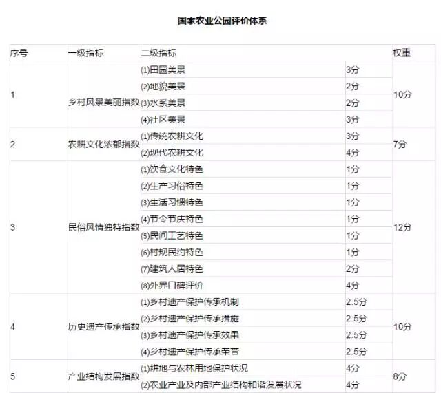 国家农业公园评价体系
